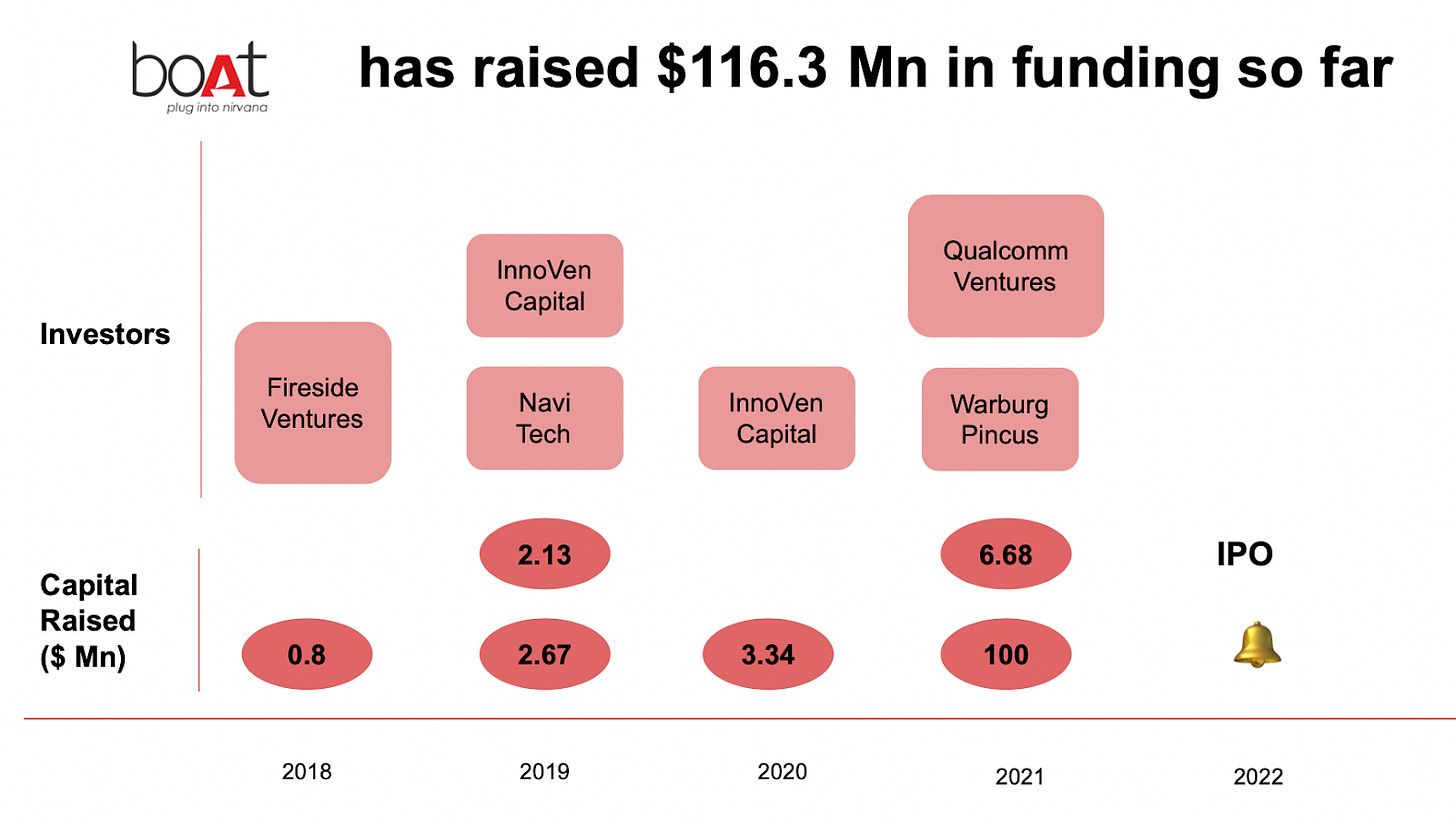 boAt has been on a shopping spree to expand its offerings. They acquired Delhi-based competitor Tagg Digital (2021) and Singapore-based smart wearables IoT start-up Clove IoT (2022). These will enhance the development of boAt’s products.